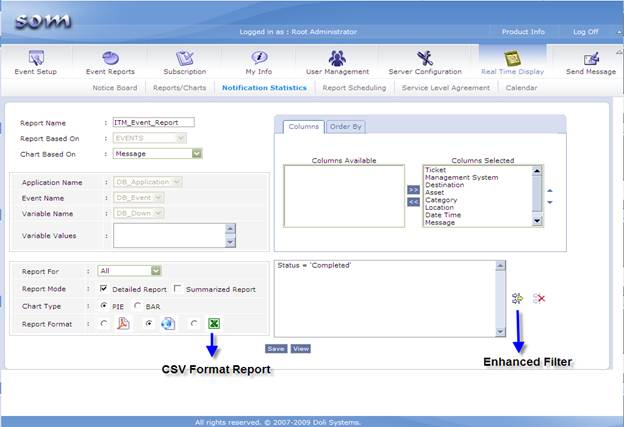 Service Operations Manager (SOM) is a web based application that takes care of messaging needs of an enterprise. It provides the ability to receive events from applications, systems and machines. SOM has an internal intelligent engine that can be configured to reduce, categorize and enrich the events to be notified.