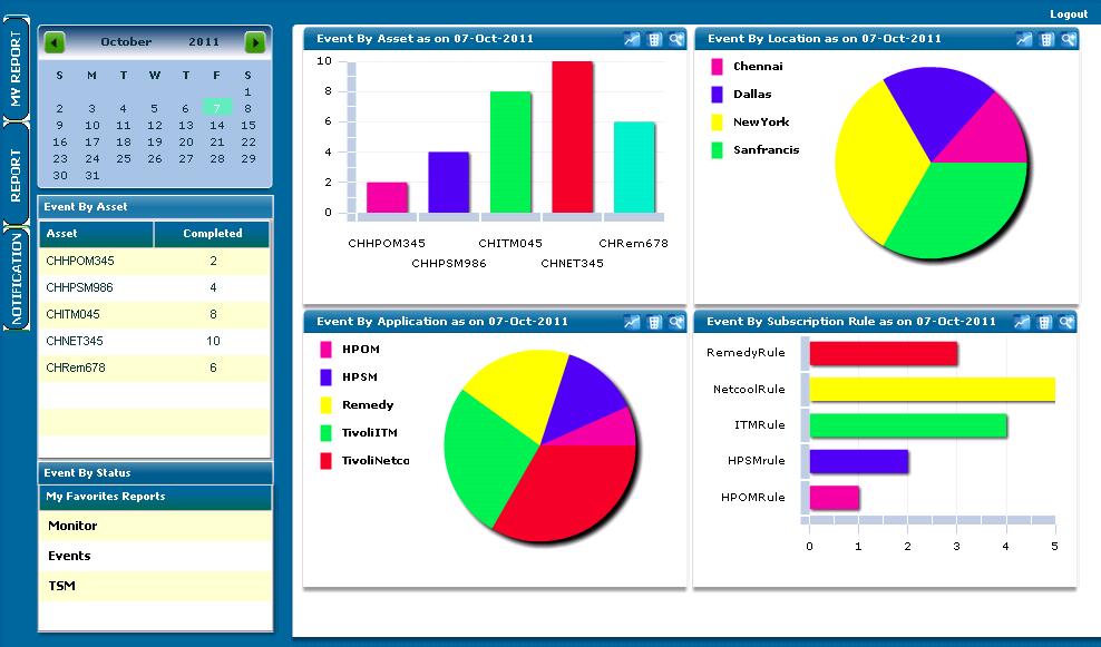 SOM provides integration capabilities to enterprise application such as Tivoli TEC, ITM, Netview, Netcool Omnibus, HP OVO, HP OVW, HP Service Desk, Peregrine Service Center, Microsoft MOM, Any relational database, Oracle Application Servers, BMC Remedy, IBM Siview, etc. SOM also provides java api, soap api to integrate with any legacy application.